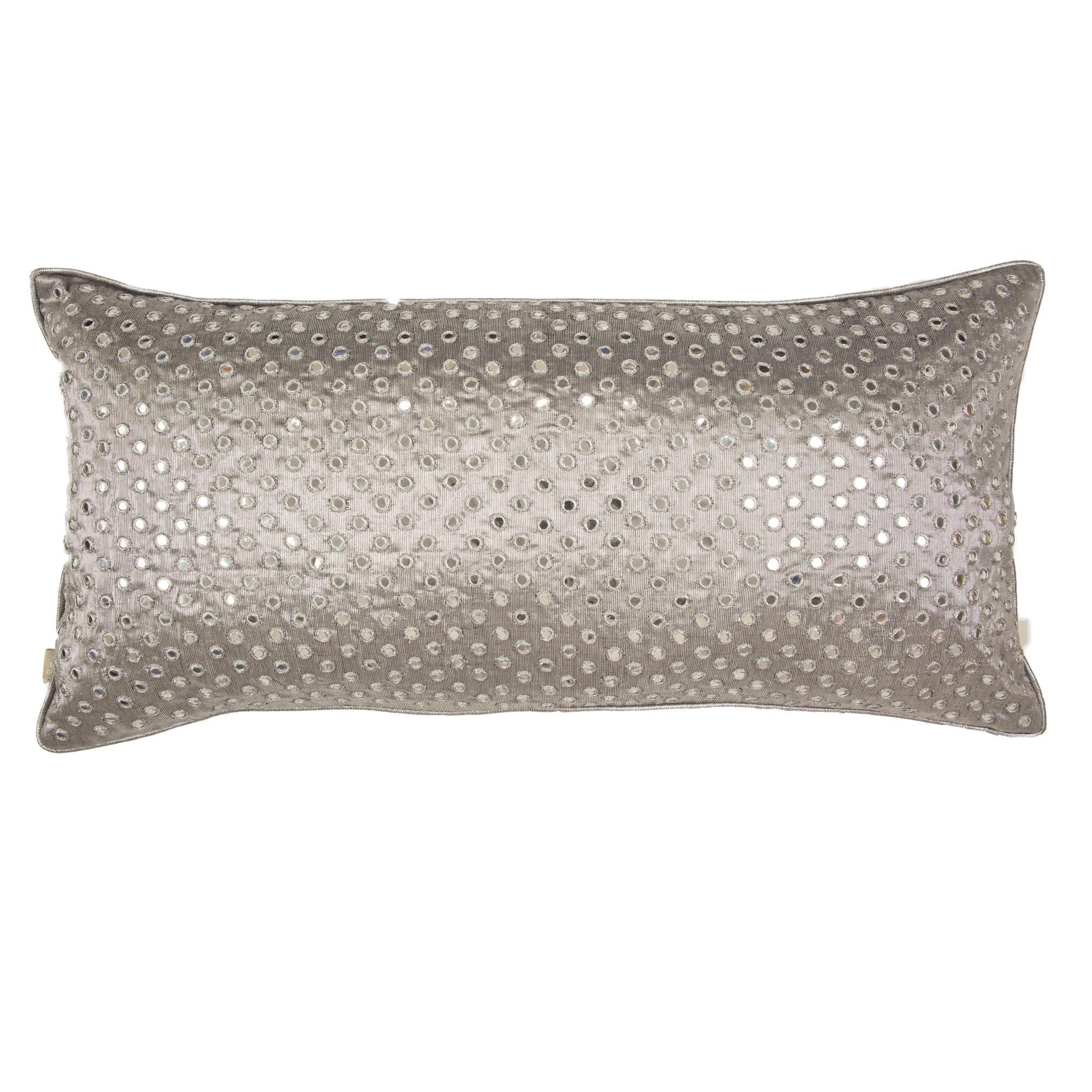 Mirrors hand embroidered on a beautiful grey silk textile.