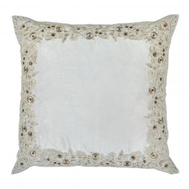 Indian ornate border on white cotton silk