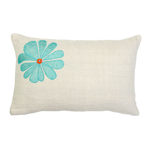 One Aqua flower mix match with our all over embroidered summer pillow.