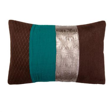 Brown Suede mix matched with silk and leather patterns. The thread work on sides accentuates the pillow even more.