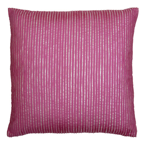 Narrow pink silk strips embroidered on a shiny silver textile. A shiny silver back makes it reversible for the party days