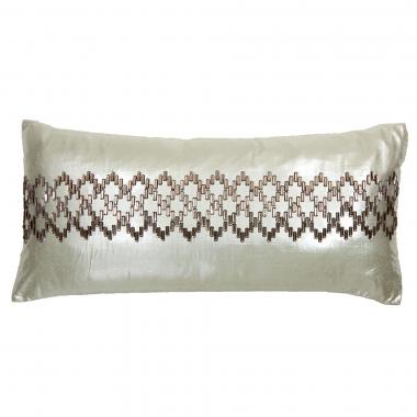 A mix match stepping stones in metallic. Works well with our reversible ivory creme velvet coverlet.