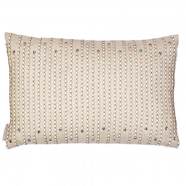 ivory Linen mesh with hand-embroidered pearl droplets.