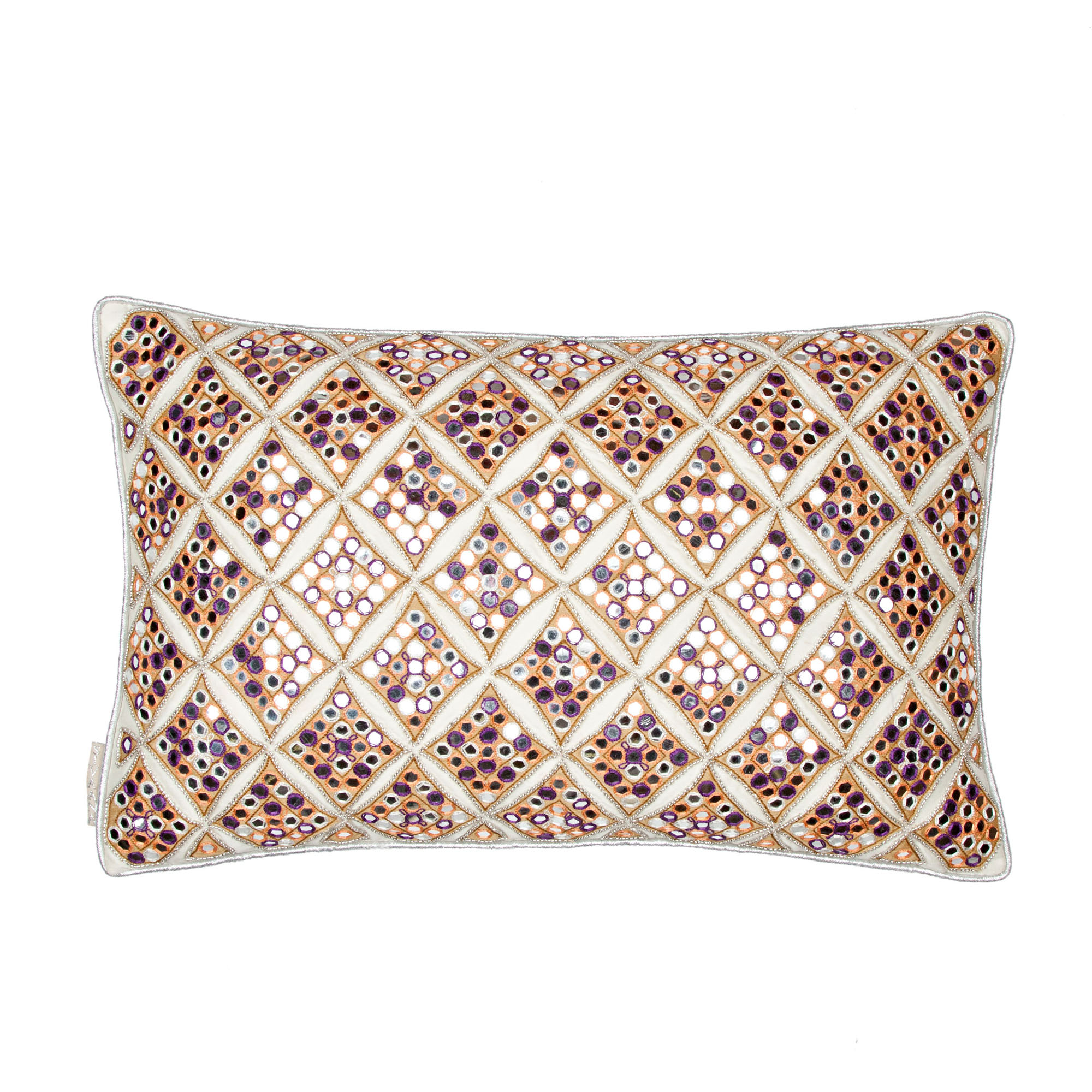 Ivory Silk embellished with Plum and Coral Embroidery and a Mirror Detail.
