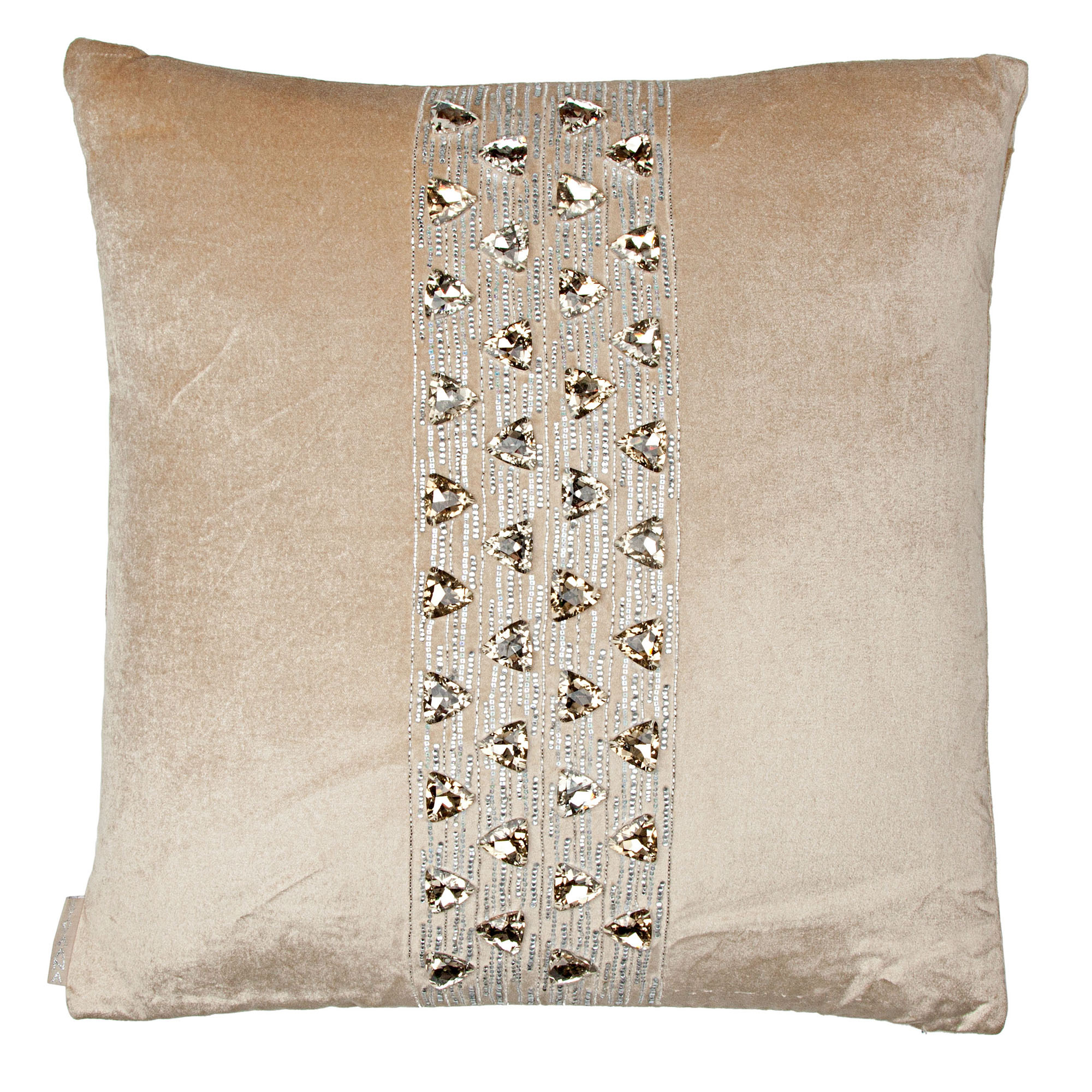 Triangular stones make a pyramid center panel. Available in cappuccino, lavender or ivory velvet.