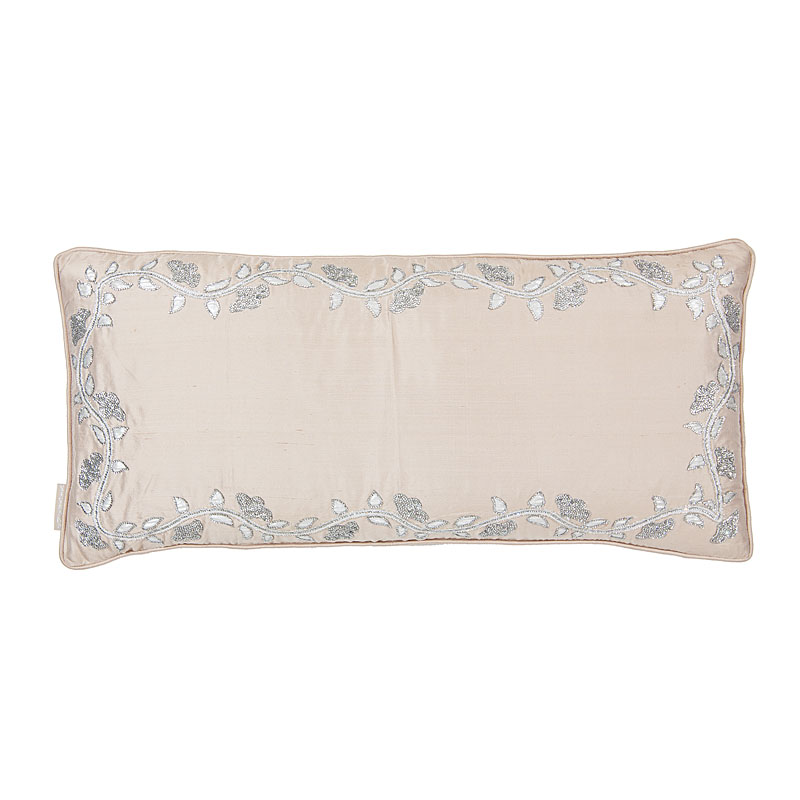 Crystal leaves stone border on a basic champagne pearl silk.