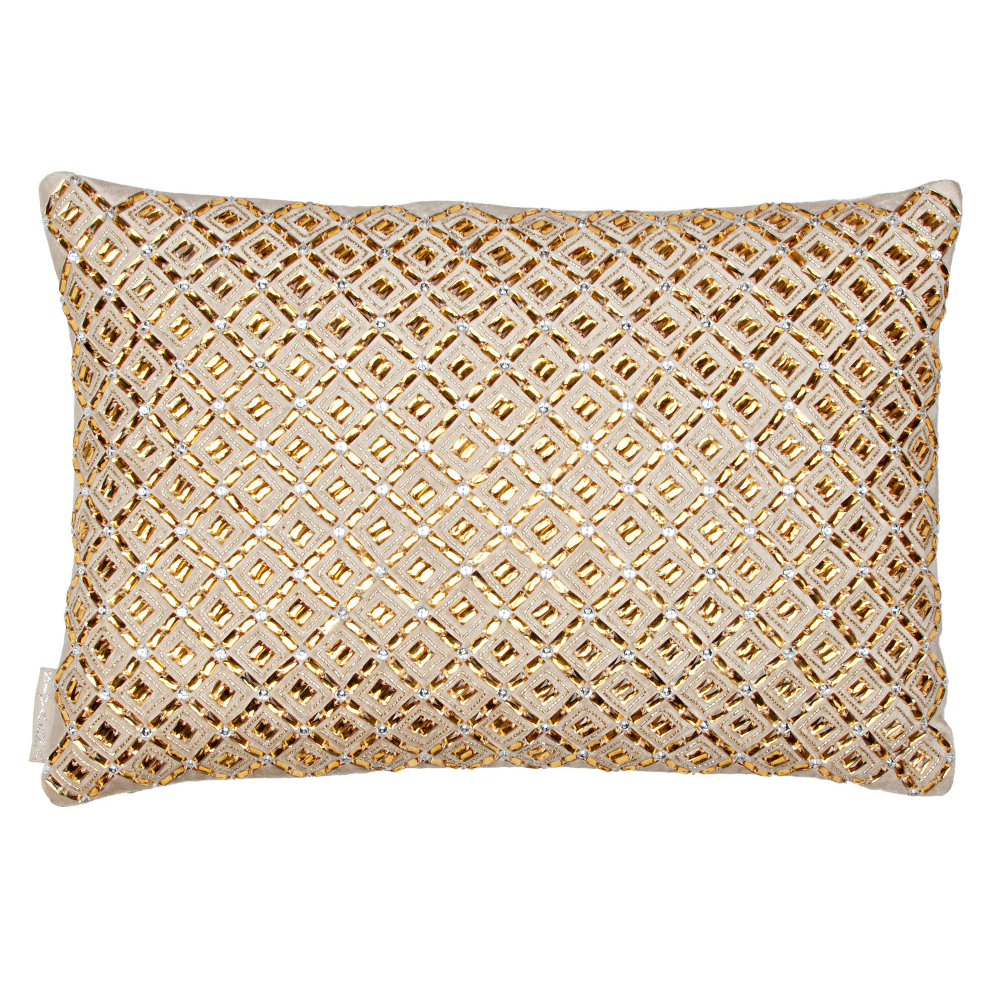Geometric topaz stones embroidered on a rich velvet cappuccino base.