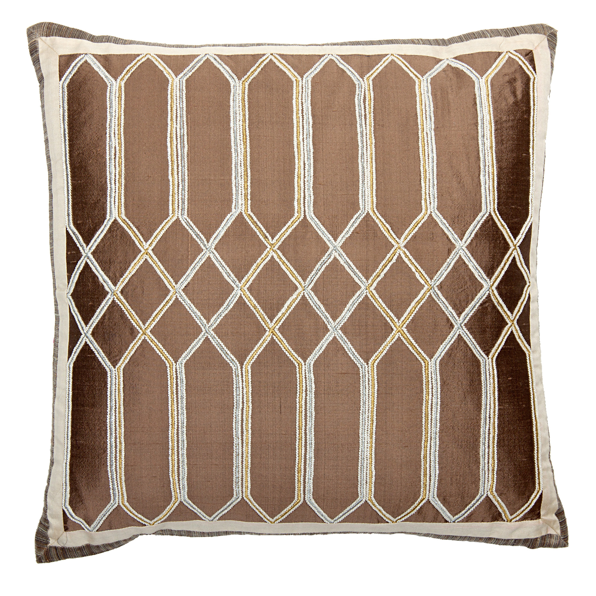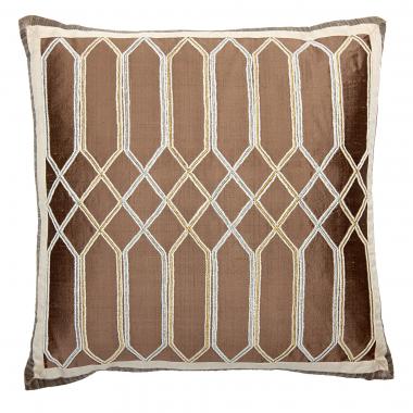 A moroccan beaded embroidered pattern over a chocolate mousse color silk background.