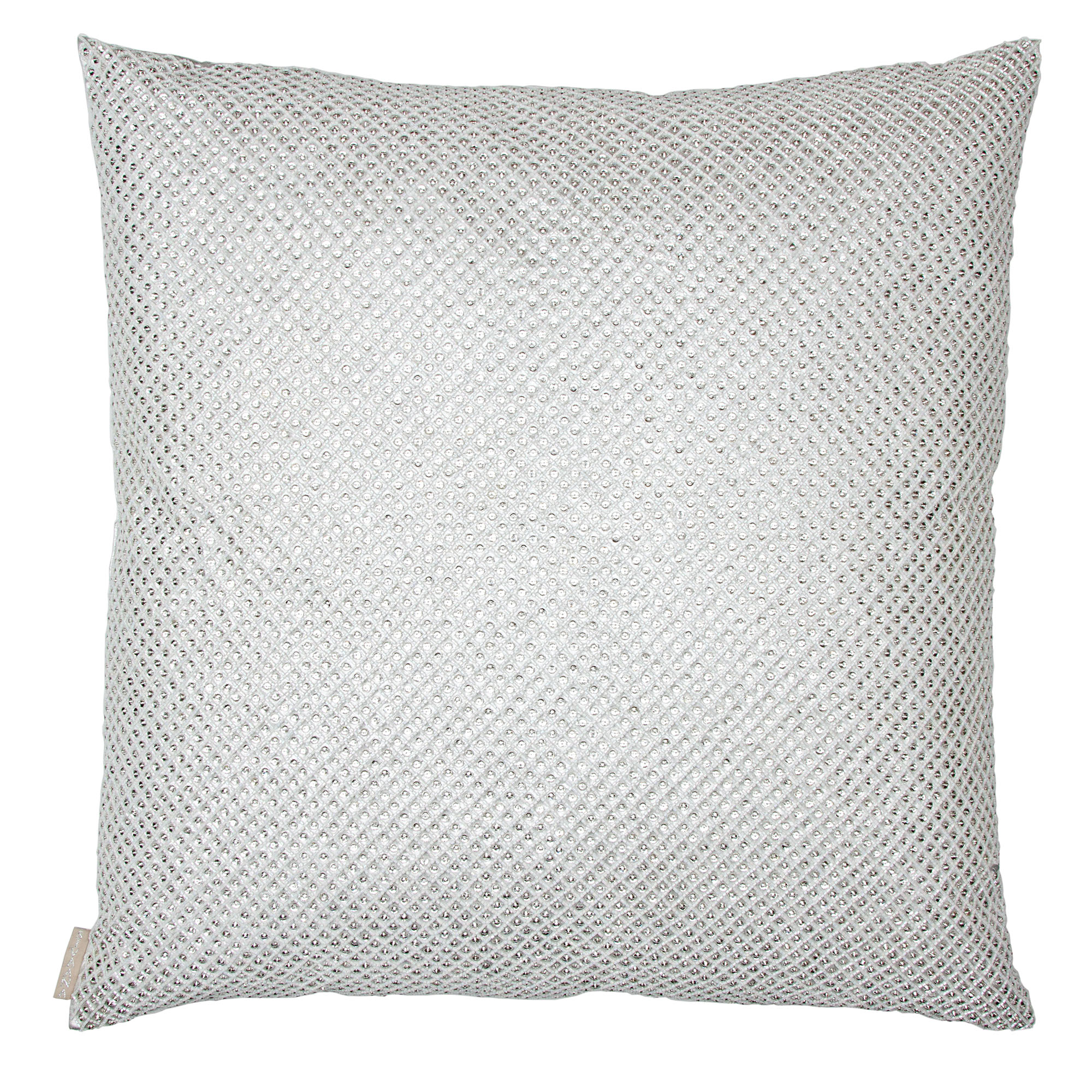 An all-over composition of hand-stitched beads complemented with crystals results in a masterpiece of bridal shimmer.Our Guilty Pleasure pillows throw some metallics into the mix. The gold grants a winning look, while the silver is second to none.