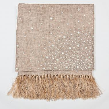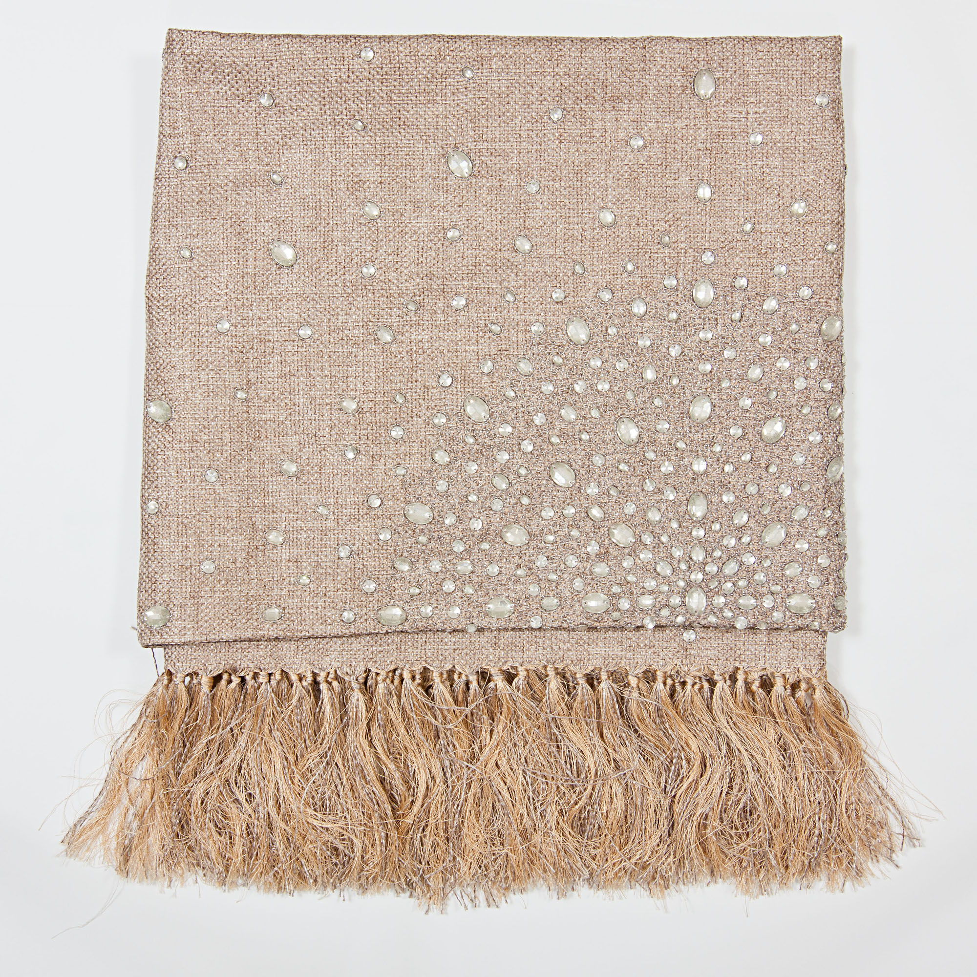 The original stone scatter jute collection featuring our signature combination of natural textiles with a pop of stone and beaded embellishment. The stone scatter jute throw is backed with a golden-hued silk for luxury to the touch.