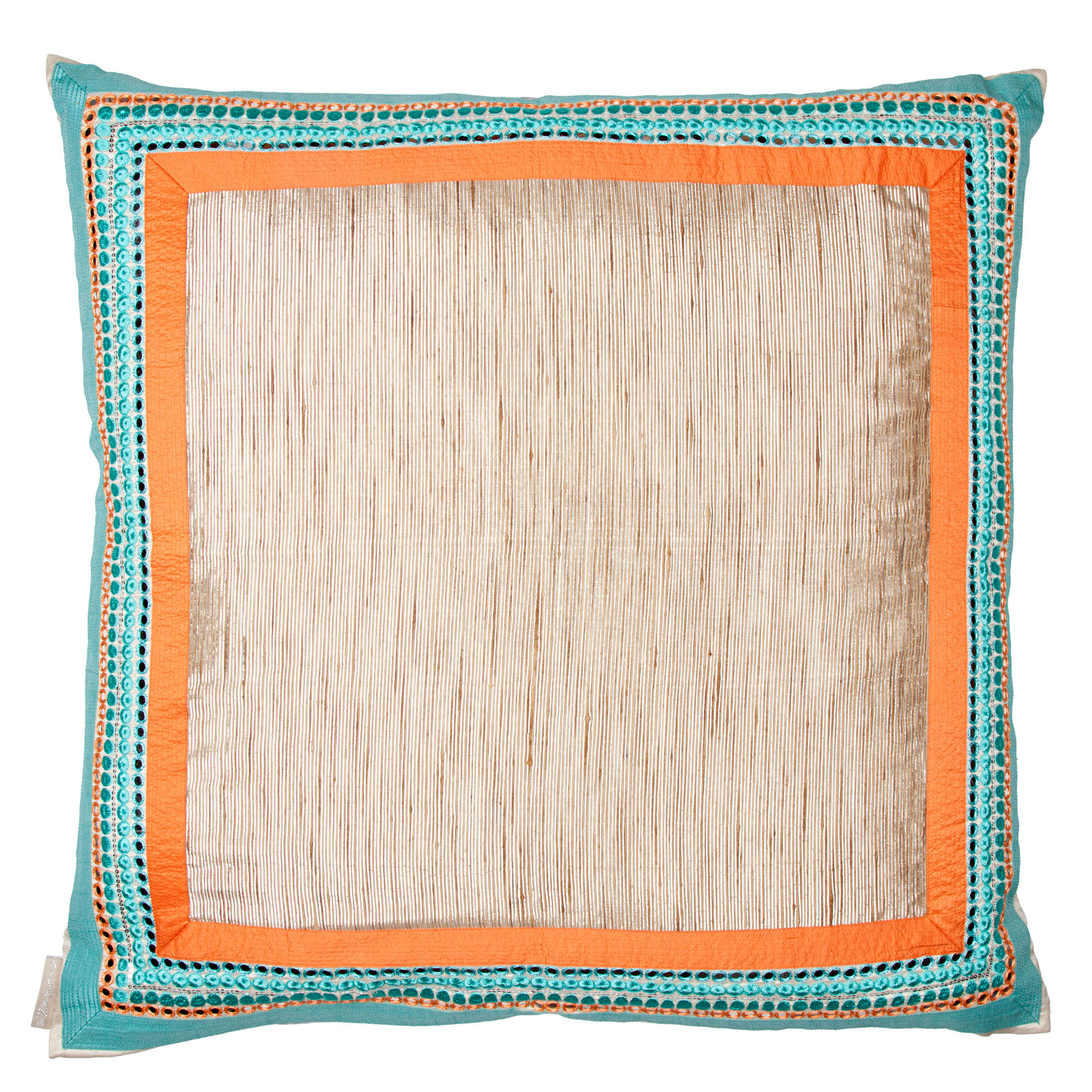 Natural and golden hues with compliments of orange and turquoise resemble the sun setting on the sea - exuding warmth and an inspiring freshness.