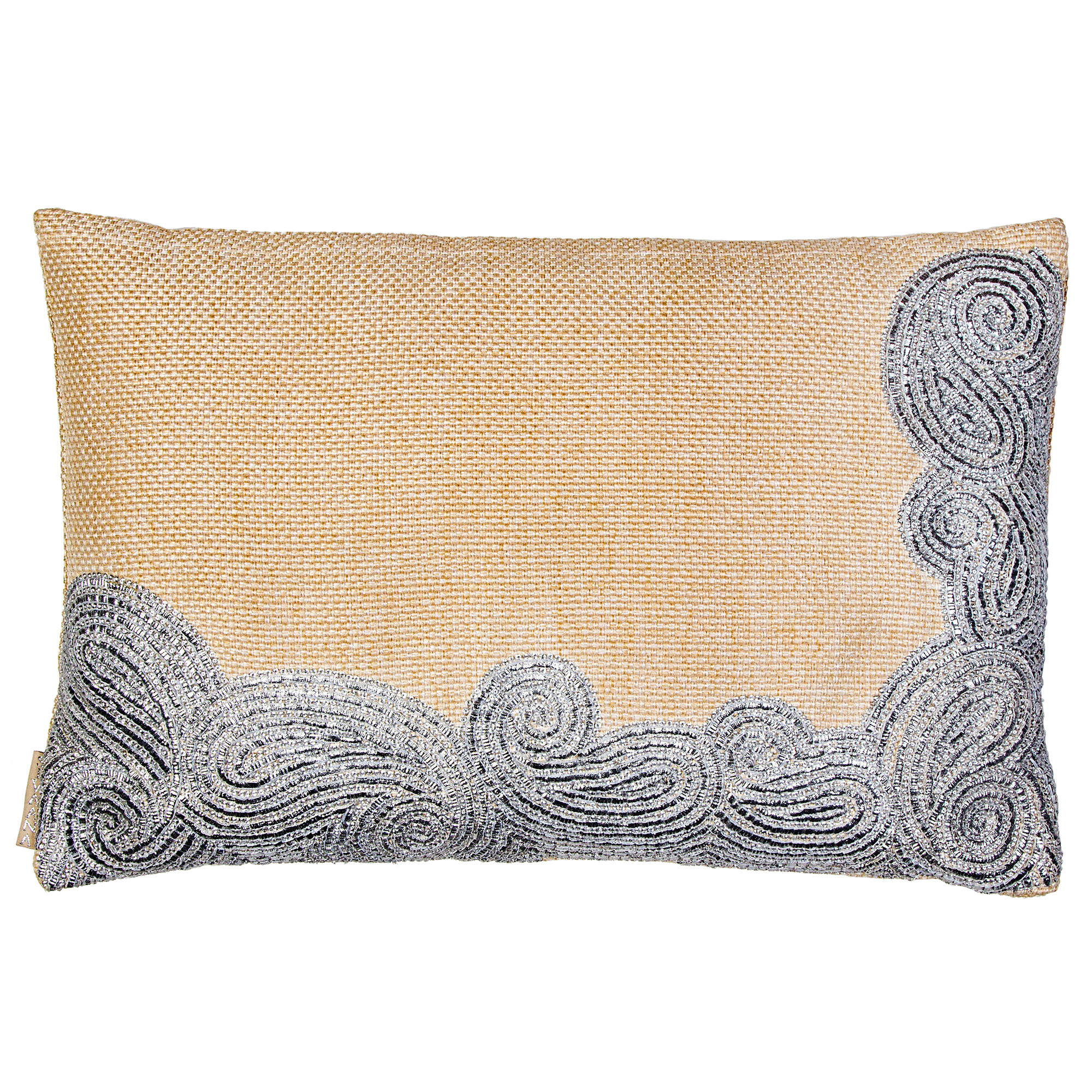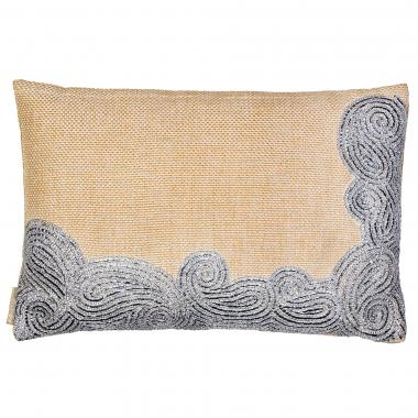 Natural Chic. Silver Embroidered paisley pattern on a natural Jute.