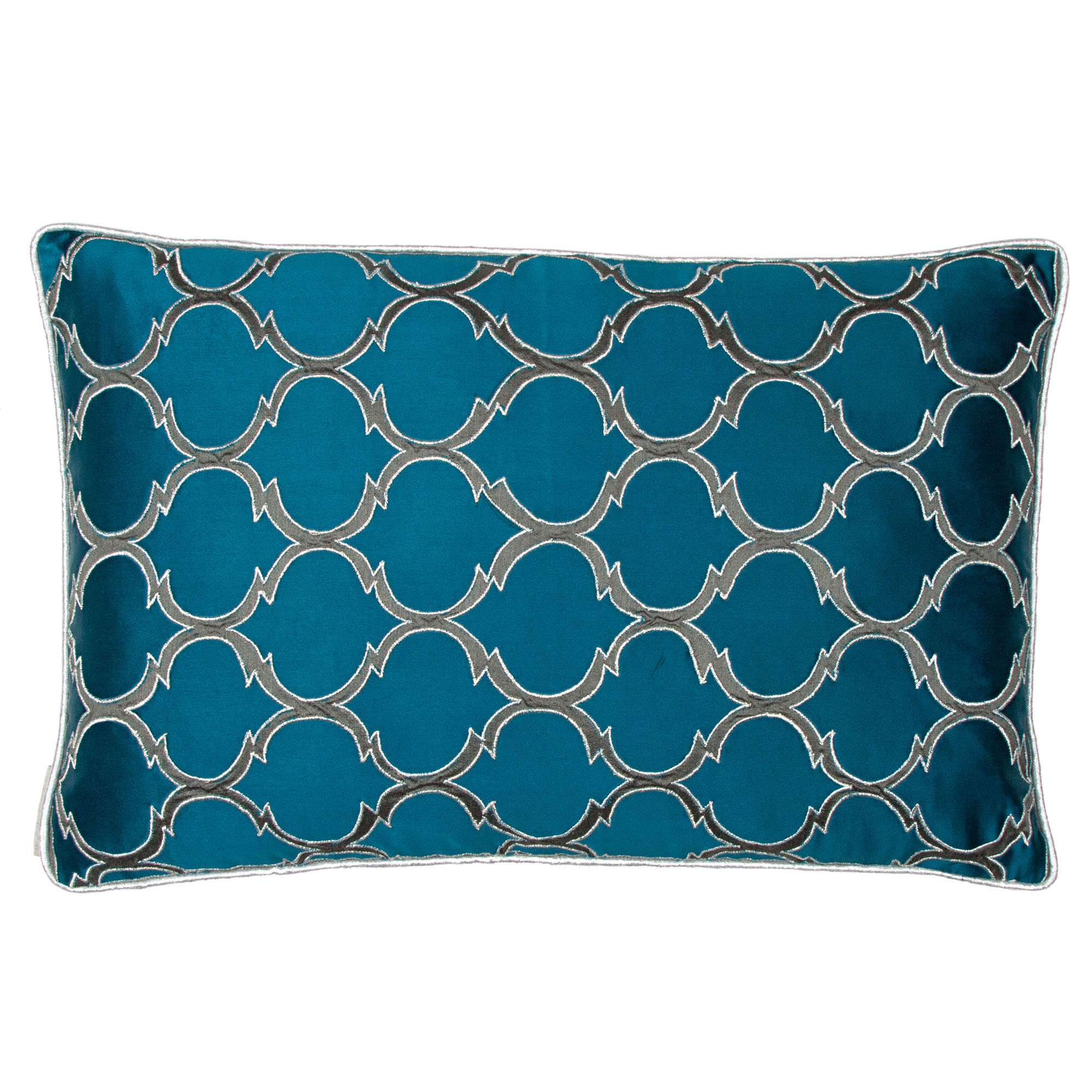 The fusion of a simple Moroccan pattern in silk outlined with hand-embroidery and a sophisticated color combination of grey and teal make this a modern choice. Pair with SIV1247 - Moroccan Grey - for a perfect compliment.