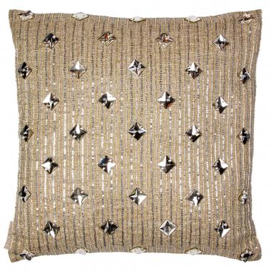 Beige Linen mesh embroidered with square clear stones and a sequin drizzle
