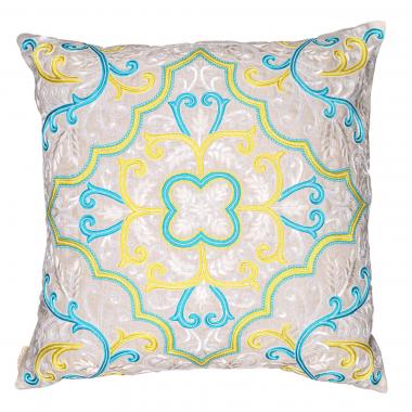As fresh as it could get . Sunny yellow and a bright turquoise blue embroidered upon a white base. Just the highlite one needs to bright up